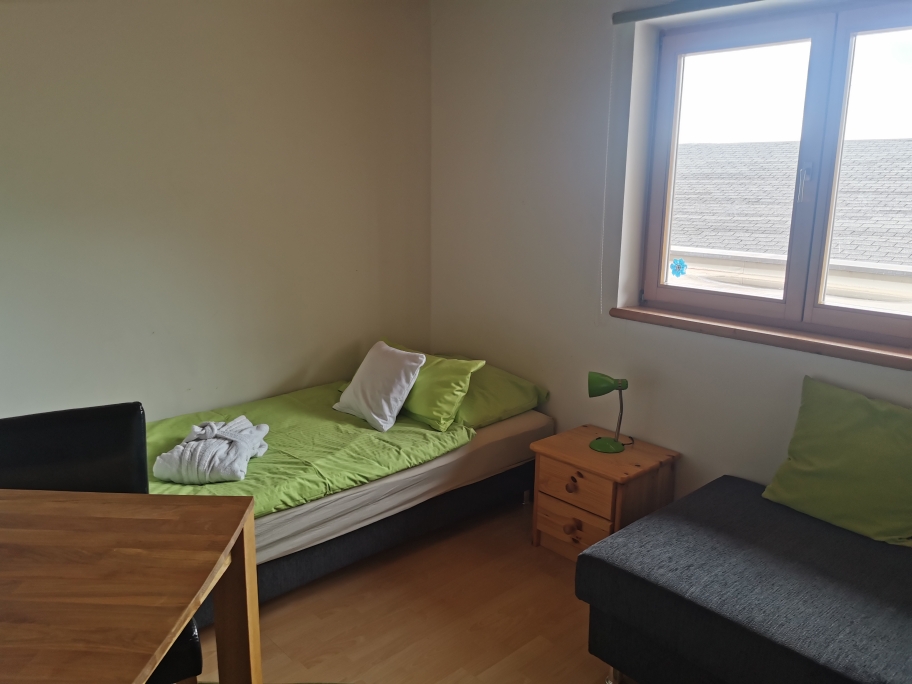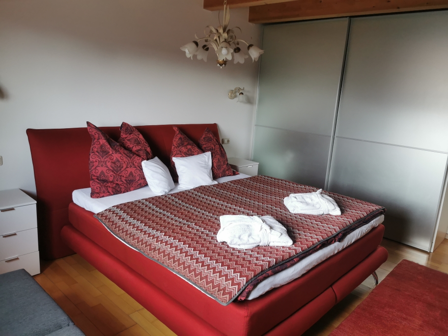 - Zimmer 1: King-Size Doppelbett 180x200, 1 Couch